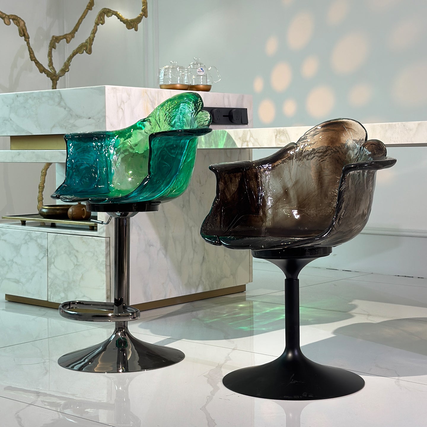 The Petal Chair is made of polycarbonate.