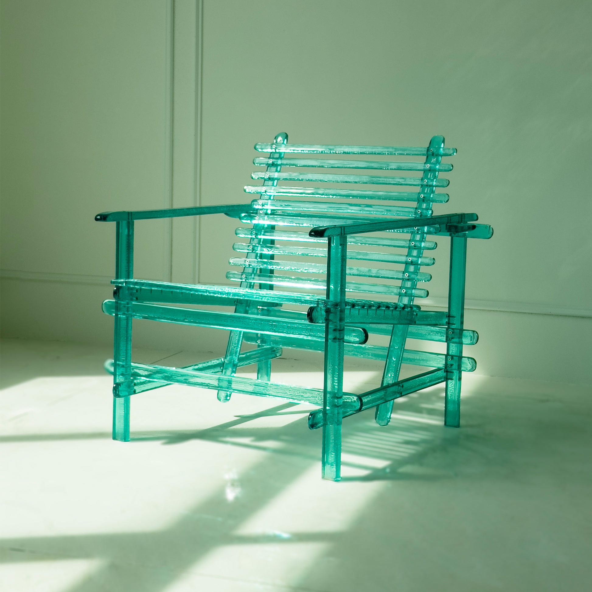 The outdoor chairs are made of polycarbonate material with a sparkling reflective effect, perfect for swimming pools, hence the name pool chairs.