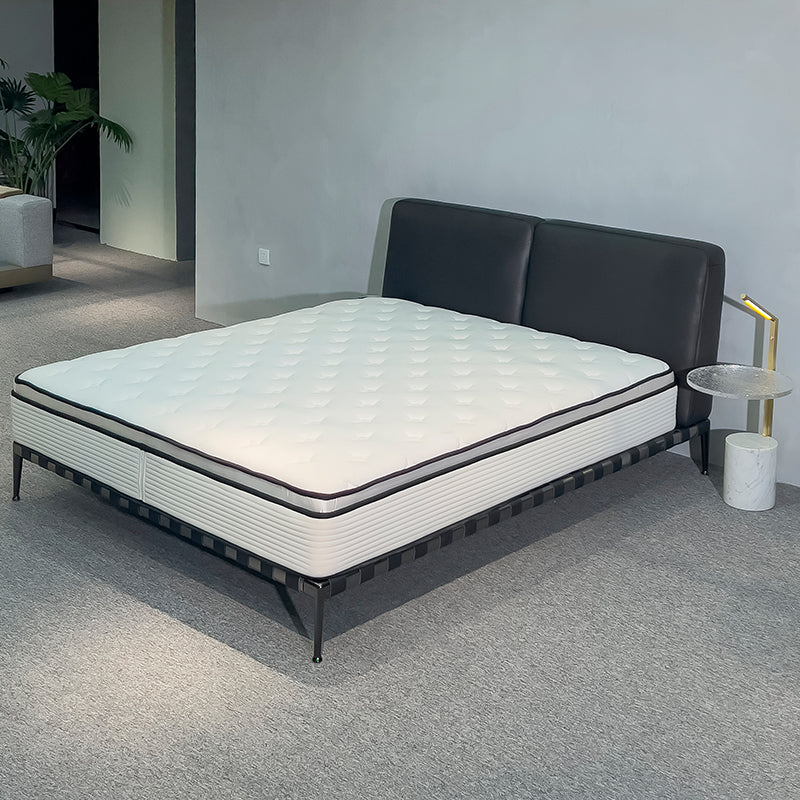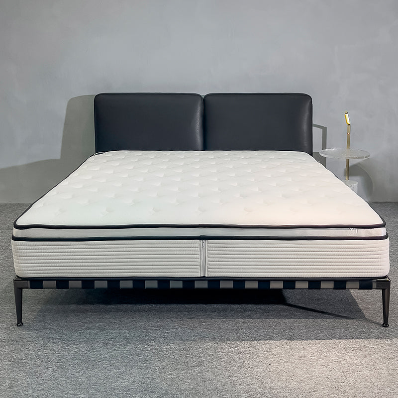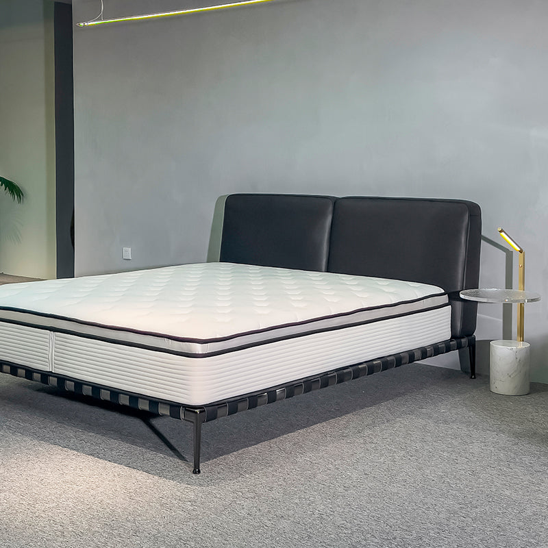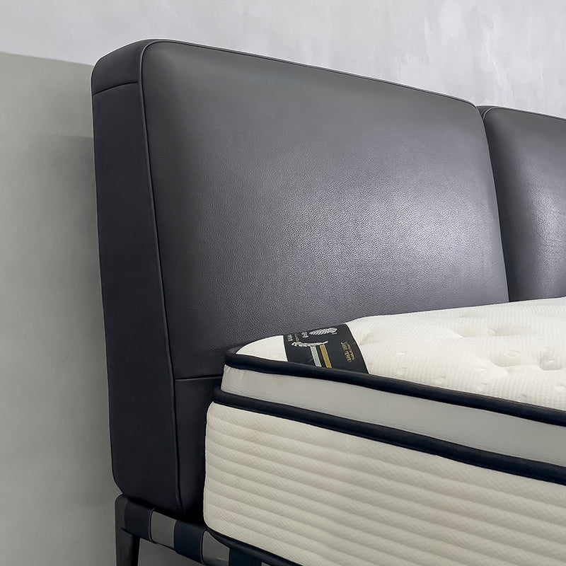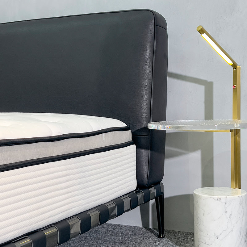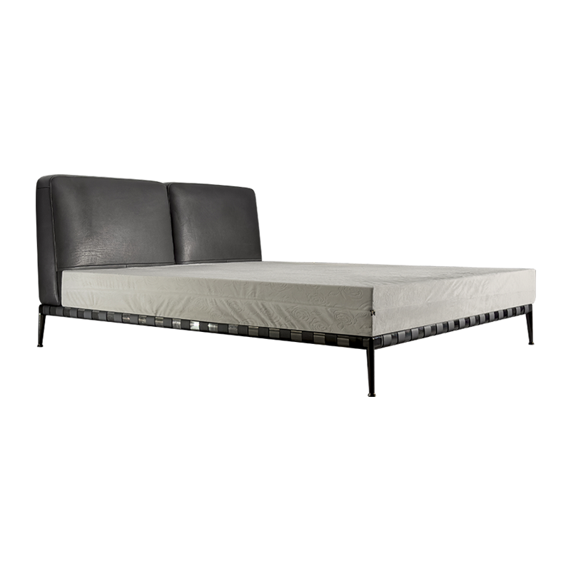 It is composed of two maxi-cushions, which offer various upholstery options, including different textiles on the inside and outside of the headboard. The bed frame is light, in lacquered metal or covered in fabric or leather, always with metal feet.