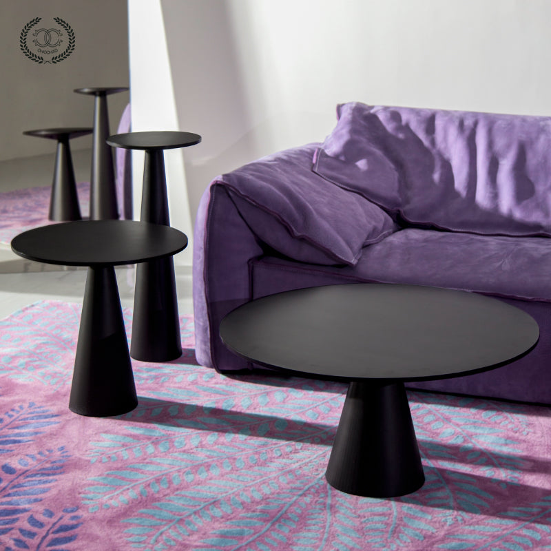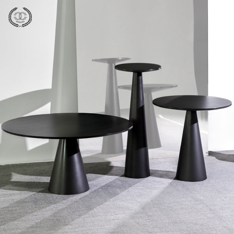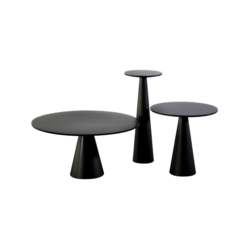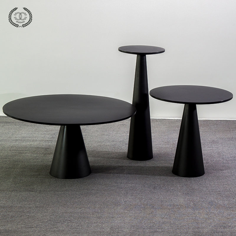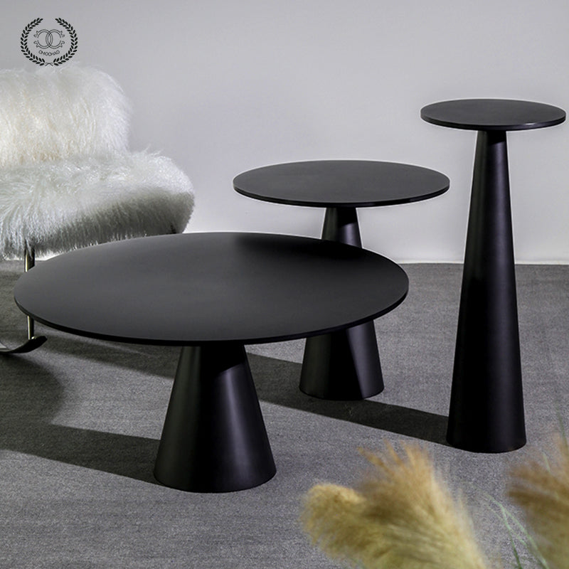 The mushroom-shaped combination side table is made of stainless steel and can be customized in various sizes.