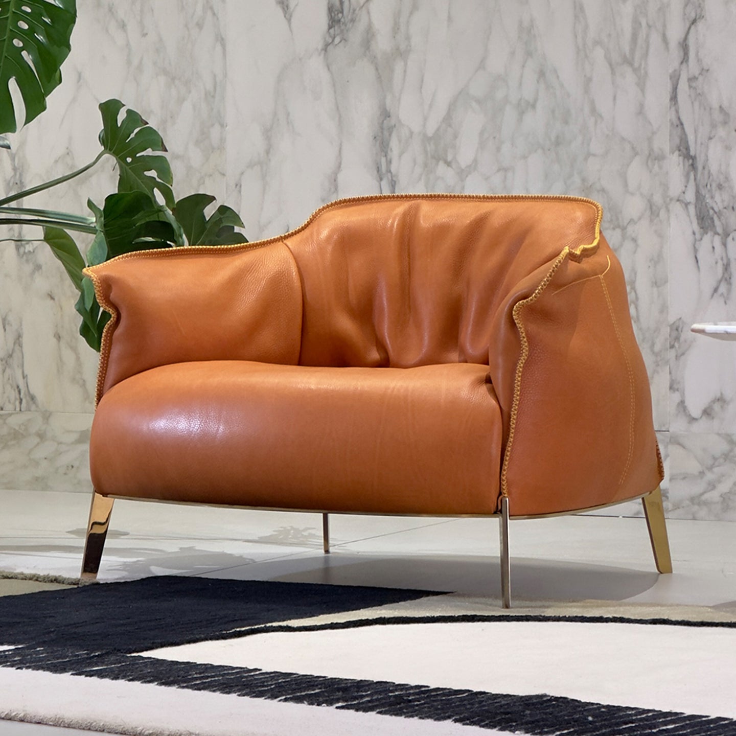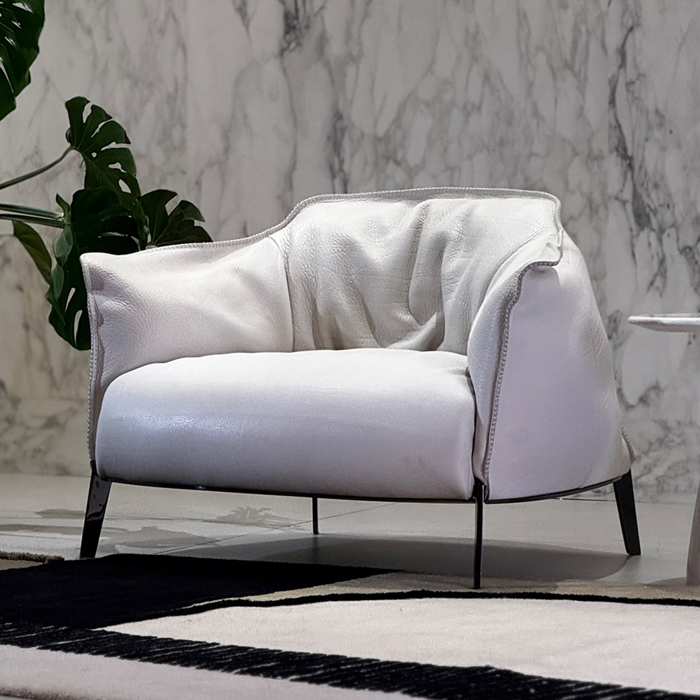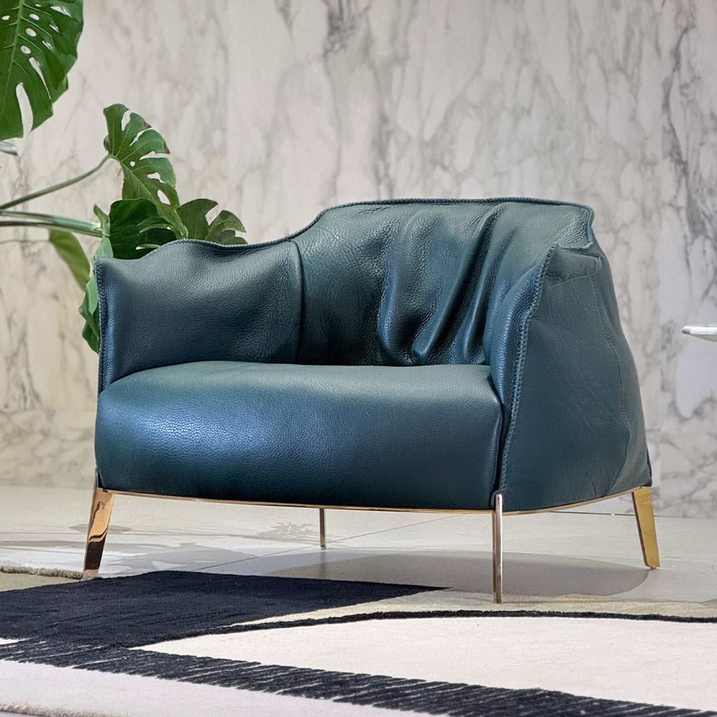 This is an extra thick leather armchair. This kind of cowhide has a natural texture. The chair is beautifully shaped and comfortable to sit on.
