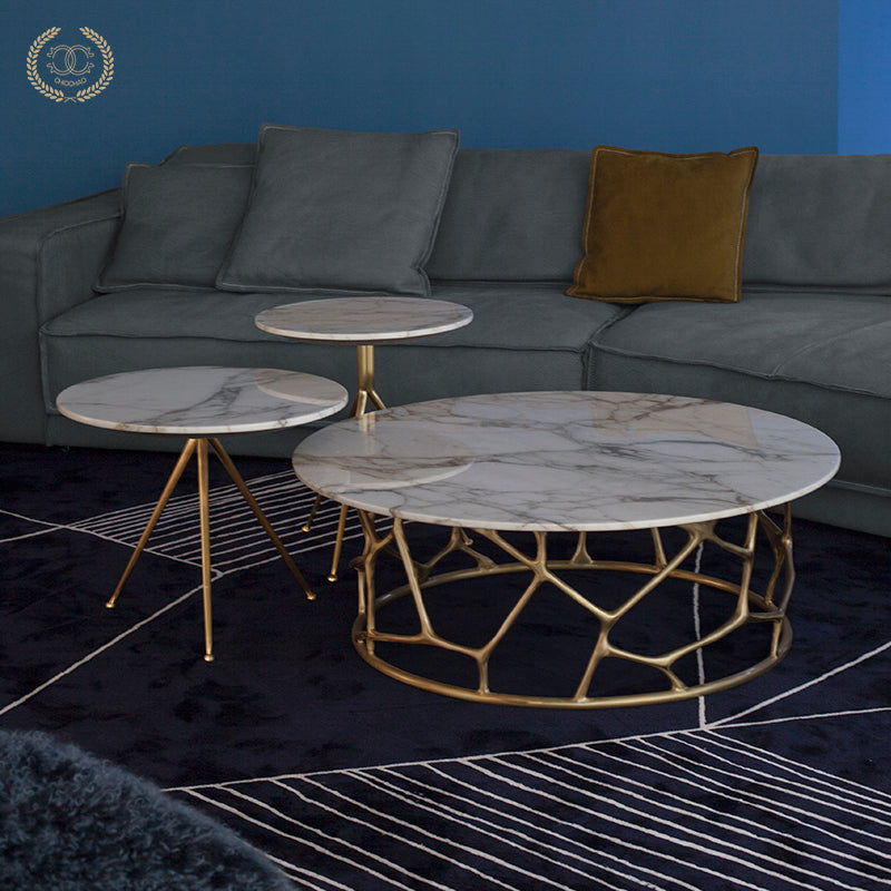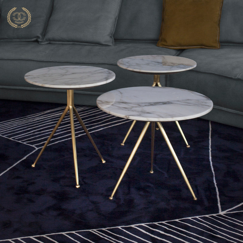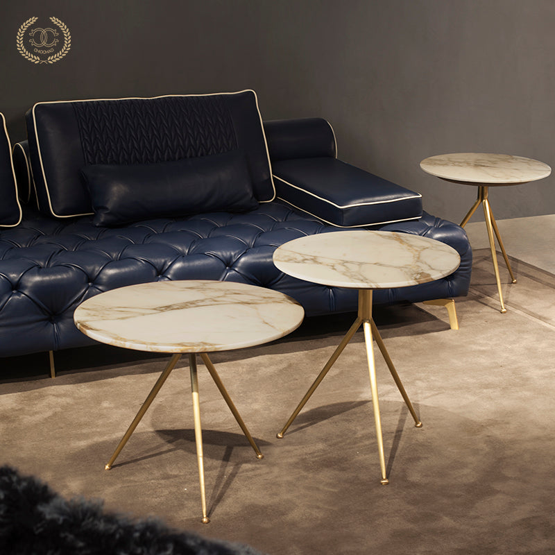 Chiếc bàn trà nhỏ bằng đồng thau này có mặt bàn tròn, tinh tế và nhỏ gọn, thích hợp làm bàn phụ kết hợp với ghế sofa. Kích thước và chiều cao có thể tùy chỉnh.